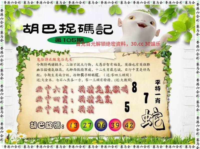 106期:必中单双【单单】开:猪43准 |