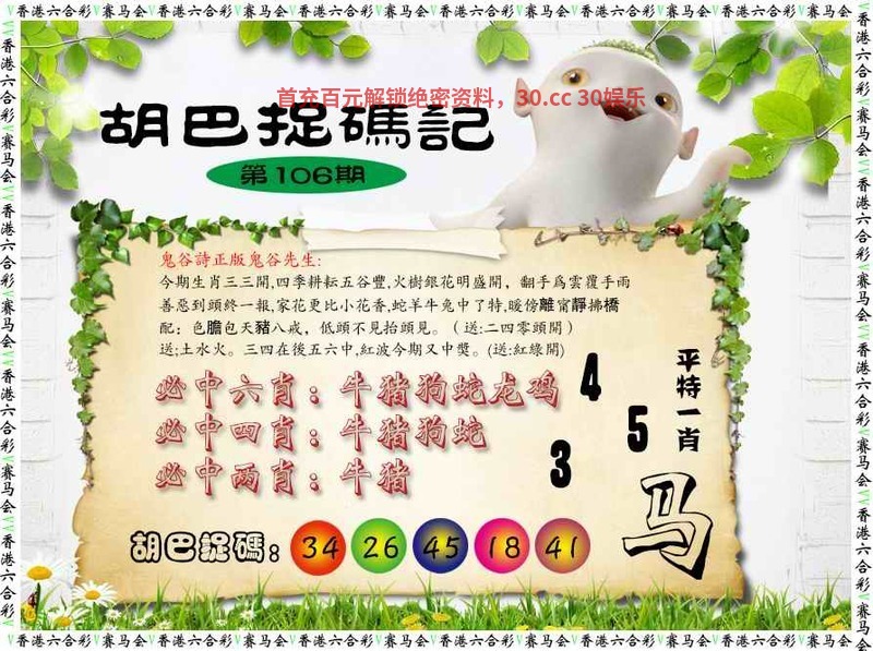 106期:🍀平特一肖【羊羊】开猪43错 | |||